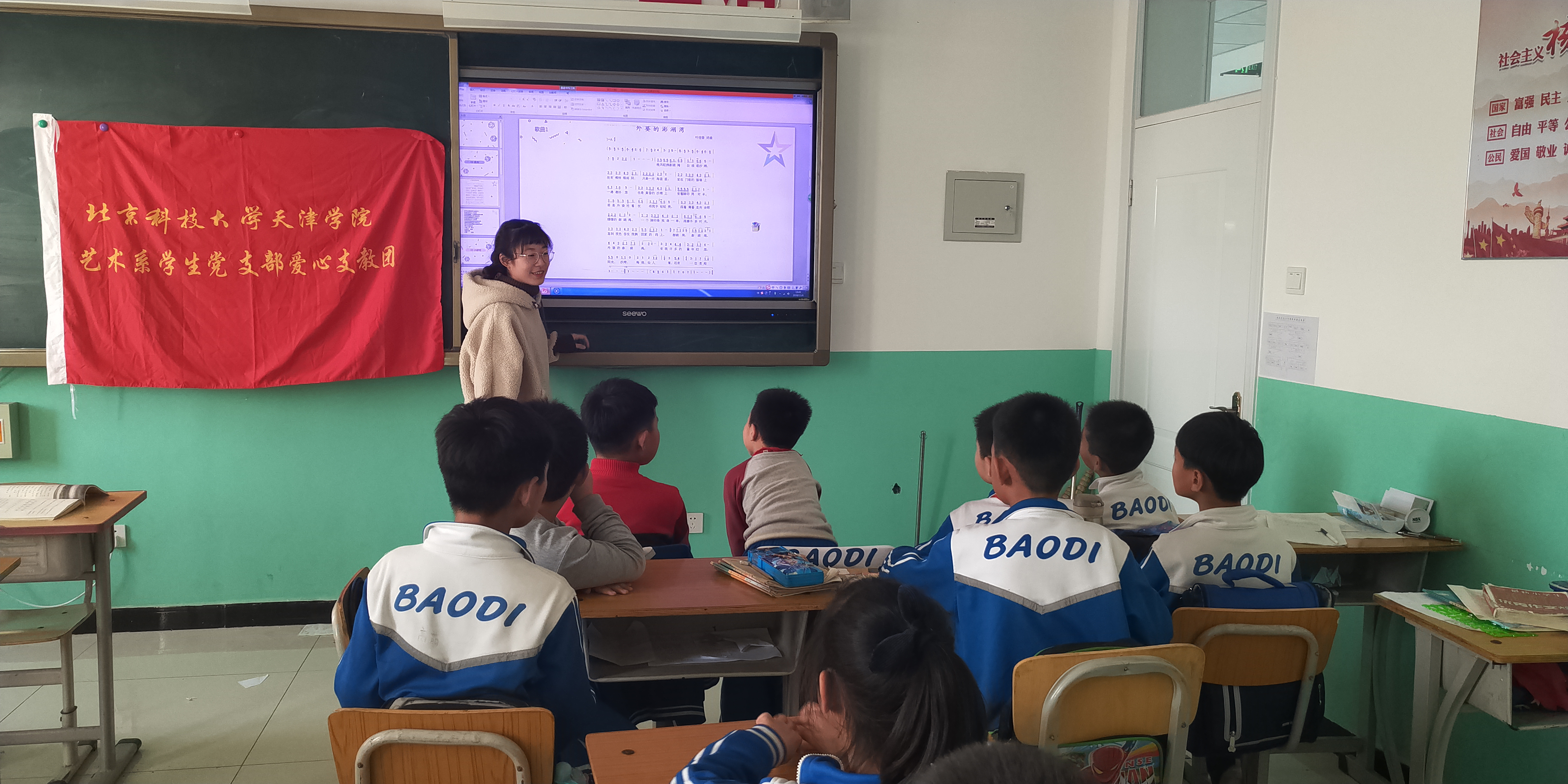 習近平總書記強調,要全面加強和改進學校美育,堅持以美育人、以文化人。藝術學院學生黨支部自2017年3月學期伊始便前往天津市寶坻區大唐莊鎮初級中學和南里自沽中心小學進行愛心支教活動,至今已經持續了3年之久,本學期藝術學院學生黨支部照例推選優秀學生黨員、積極分子前往實踐基地開展美育教學活動。