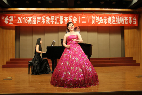 本場音樂會以“希望”為主題,不僅對兩位學生在三年來努力學習的成果做出了匯報,更展示了高麗聲樂教學的成果——高麗的學生在國內外各類比賽中獲獎,并在今年的畢業班中,高麗的兩位2012級學生,分別考取了天津音樂學院和泉州師范學院的碩士研究生。
