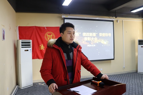 法律系“法律新星”榮譽(yù)稱號(hào)頒授儀式12月26日在眾創(chuàng)空間一樓路演室隆重舉行。法律系黨總支書記馮海燕、王蘭萍教授、全體輔導(dǎo)員及各年級(jí)學(xué)生代表共50人參加活動(dòng)。頒授儀式由分團(tuán)委書記羅大欽主持。