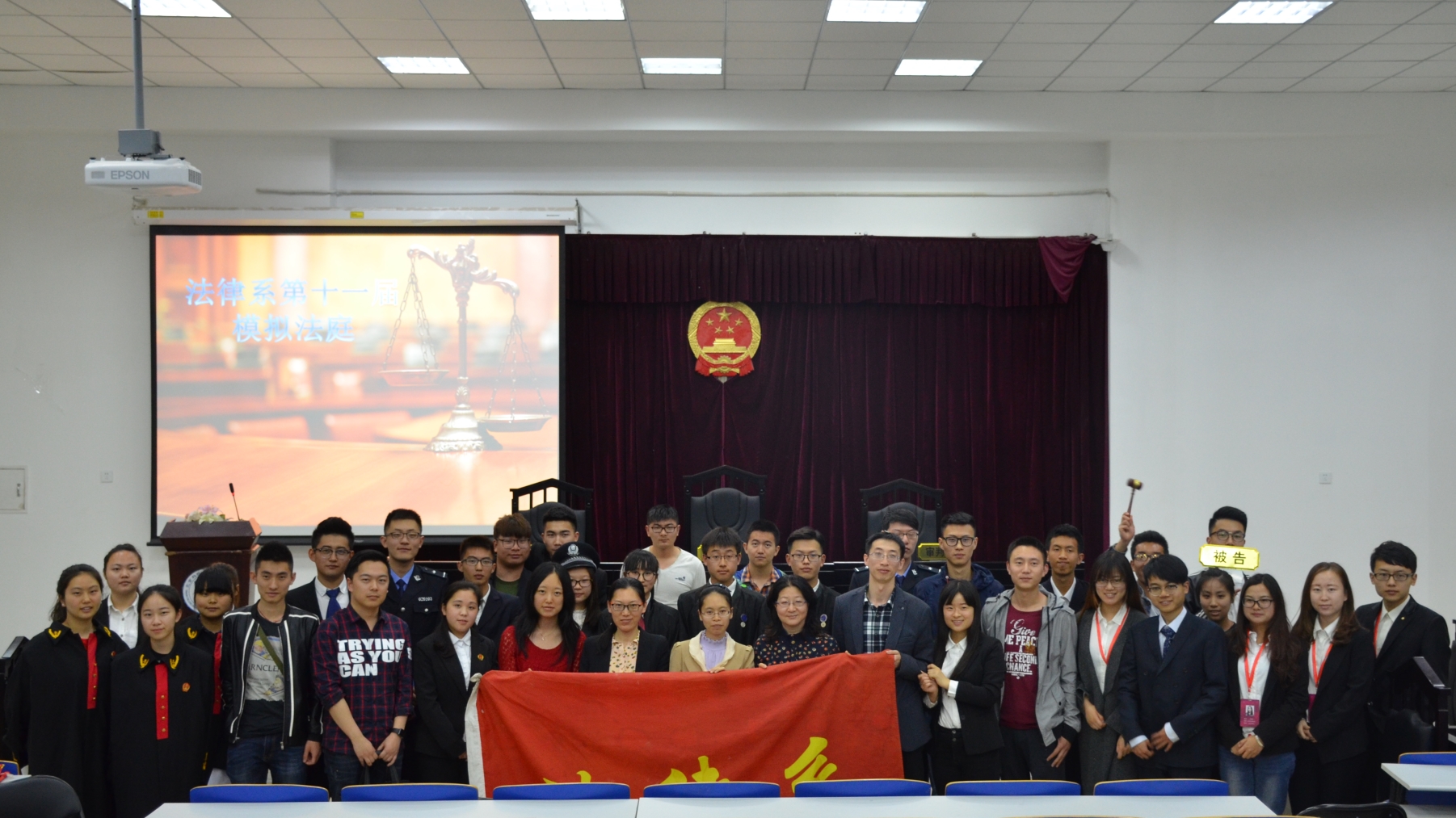 4月28日晚18:30,由法律系分團(tuán)委、學(xué)生會主辦的第十一屆模擬法庭在8-109正式開庭。法律系黨總支書記馮海燕,分團(tuán)委書記閆謖,老師劉志蘇、王哲老師、陳慧,導(dǎo)員孫超、朱嘉陽、王志潤出席了本次活動。