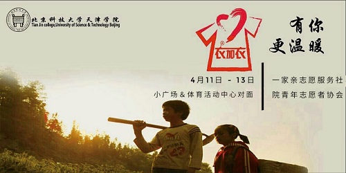 2017年4月11日至13日,北京科技大學天津學院青年志愿者協會與寶坻區“一家親”志愿服務社聯合開展了為期三天以“衣加衣,我們一直在行動”為主題的舊衣捐贈再利用環保公益活動。本次活動共募集愛心物資120余袋,包括...