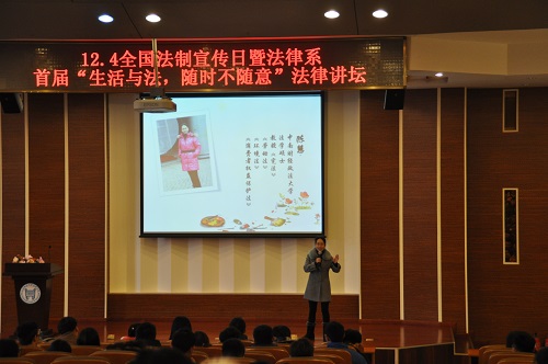 為弘揚(yáng)憲法精神,加深同學(xué)們對(duì)法律知識(shí)的了解,體會(huì)法律的重要性,法律系分團(tuán)委、學(xué)生會(huì)以“全國(guó)法制宣傳日”為契機(jī),于12月4日下午15:30在理工館學(xué)術(shù)報(bào)告廳舉辦的首屆“生活與法,隨時(shí)不隨意”法律講壇。 活動(dòng)開始,...