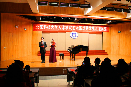 2015年11月11日18:30,北京科技大學天津學院藝術系優秀學生匯報展演在12教學樓弘藝音樂廳舉行。 在藝術系聲樂1401班王明明同學和聲樂1302班魏欣同學的精彩開場白后,演出正式拉開了帷幕。 整場音樂會中共有29個...