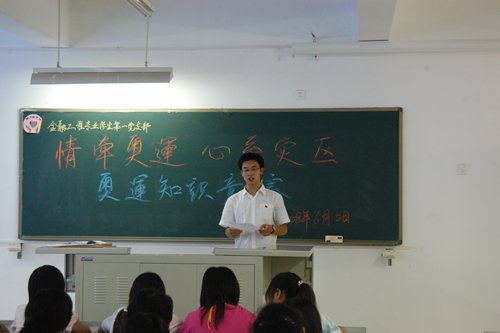 經(jīng)濟系金融工程專業(yè)學(xué)生第一黨支部舉行奧運知識競賽 支部宣傳委員白振希講解奧運知識、宣傳奧運理念 6月5日,當(dāng)奧運會倒計時64天,祥云火炬在毛主席故里韶山傳遞之際,經(jīng)濟系金融工程專業(yè)學(xué)生第一黨支部在8教3...